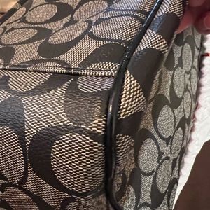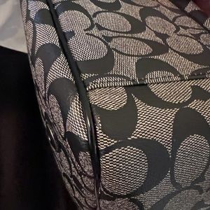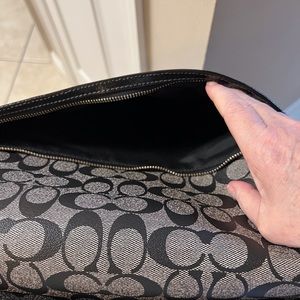 Black on grey, wipeable bag that can be used in multiple ways. Has the changing pad (never used) and shoulder strap. Has multiple pockets inside and out.