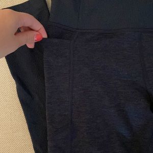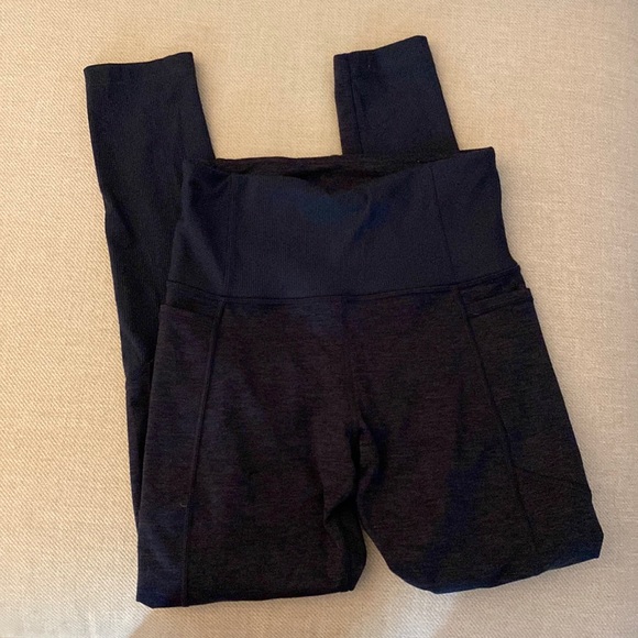 good as new athleta women's xs heathered navy leggings, textured around ankles, pockets