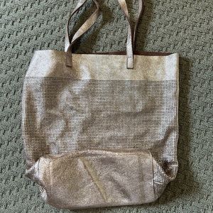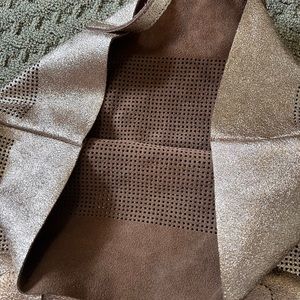 Rose metallic beach bag, suede and soft stretchy bag for summertime 43cm wide by 46 tall .