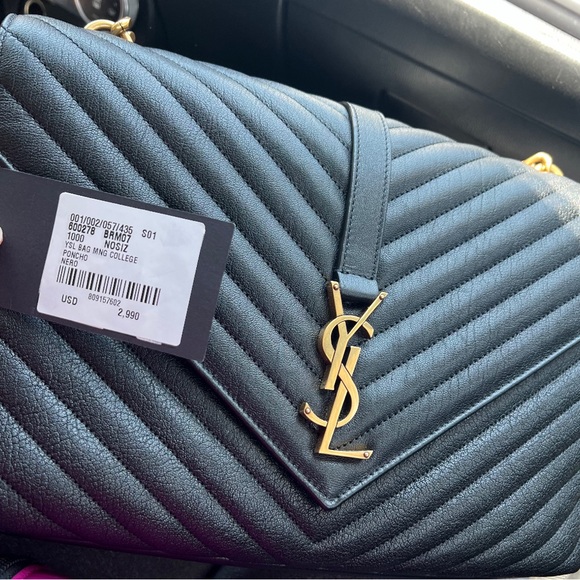 This poncho features a luxurious lamb skin construction, creating a soft and supple feel. In a classic design, this collarless poncho features an open-front cut that will complete any look. Crafted with signature Yves Saint Laurent college styling, this piece is an indispensable addition to a smart wardrobe.