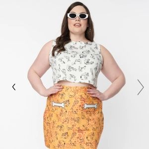 NEW Unique Vintage:Flintstones x Smak Parlour Plus Size White Dino Print Scallop Top