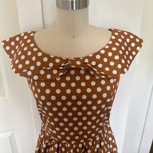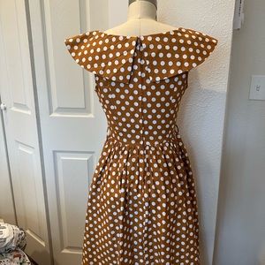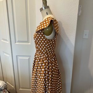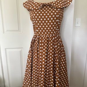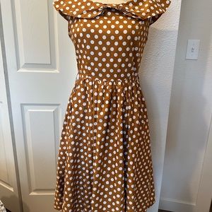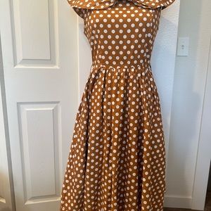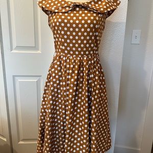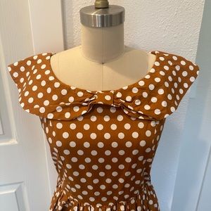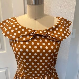 Vintage inspired Lindy Bop mustard yellow polka dot midi dress