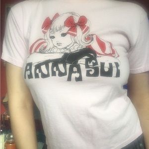 ~Pink Anna Sui T shirt. Love this piece but I don’t wear it enough. Would fit a size s or m. Hard to tell in photo but there’s very slight yellowing around collar of shirt.