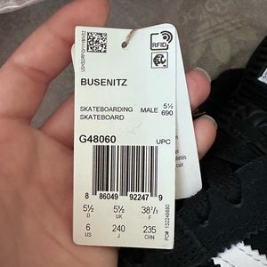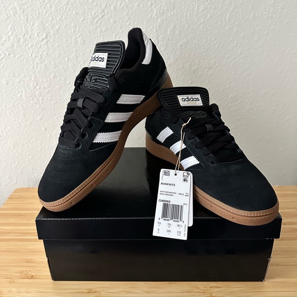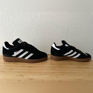 Adidas Busenitz skateboarding sneakers. These are brand new, never worn. They are black suede with white leather detail. Women’s size 7 Men’s size 5 1/2.