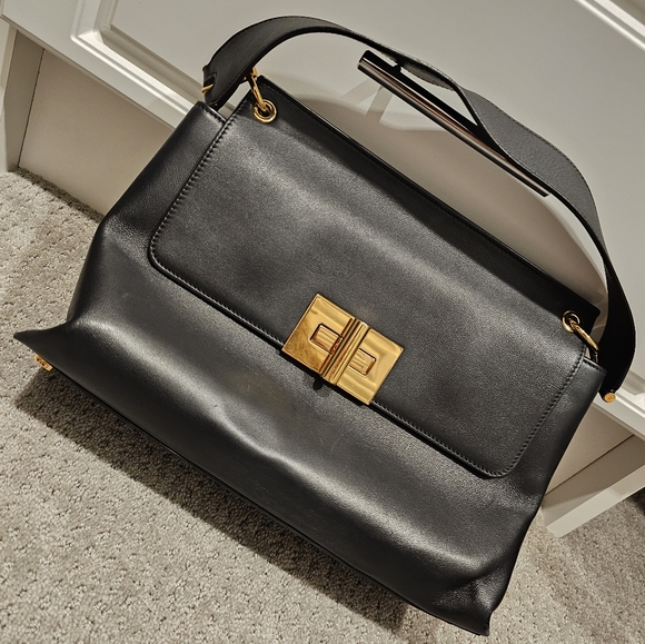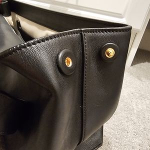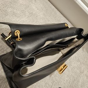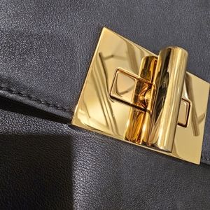 Soft lambskin leather with gold accents. multiple pockets inside. This bag has been stored and cared for. Very minimal wear on corners of bag.