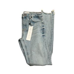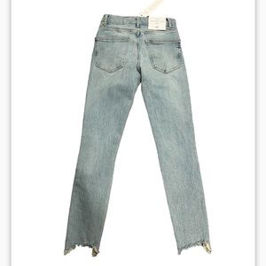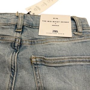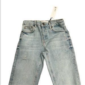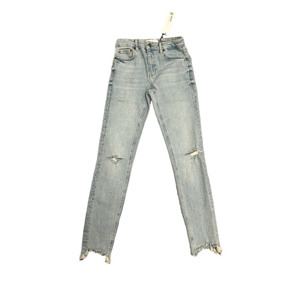 Cute light wash midrise skinny jeans with small rip details on ankles and knees. New with tags on and in perfect condition. Size 2.