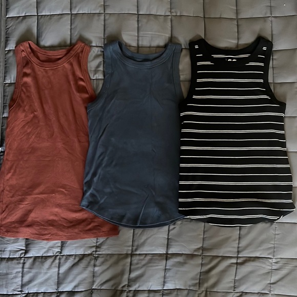 Orange High neck Tank Navy High neck Tank Black white striped Tank