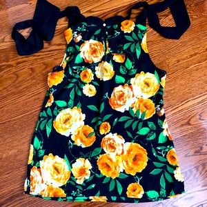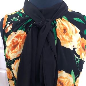 New York and Company 7th Avenue floral print bow sheer blouse. Sleeveless