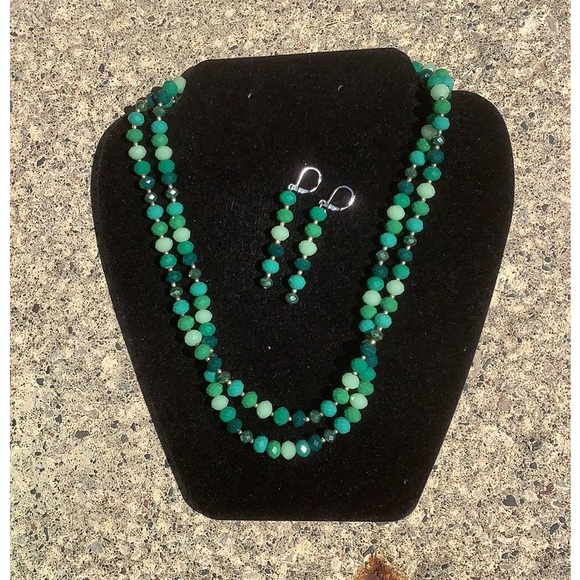 One of a kind, handmade necklace and earring set. The color is all kinds of Green.