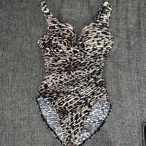 Miracle shaping one piece swimsuit in a beautiful leopard print really shapes the body in a size 10 US