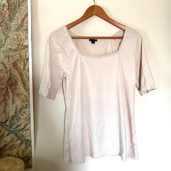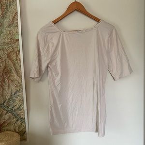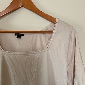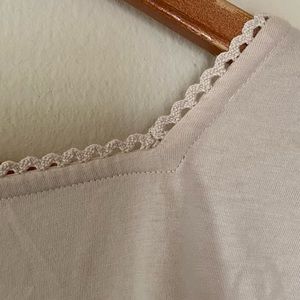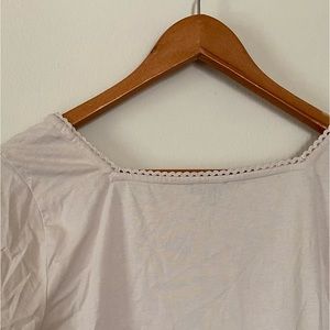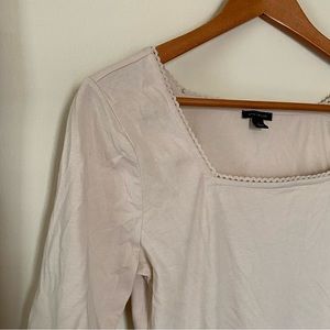 Gorgeous elevated basic. Romantic top with long sleeves and rectangle neckline with delicate lace detailing.