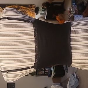 silky feeling ribbed crop tank top with adjustable straps and lace detail.