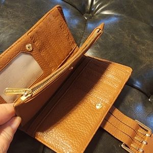 Beautiful Michael Kors hobo shoulder bag with matching wallet, new never used. The color is a gorgeous camel color with gold hardware. There's a slit pocket on the back and a nice zip pocket on the front of the bag. Measures approximately 15" wide and 12" tall, strap drop is 10". Inside is a large zip pocket and 4 smaller pockets. This combo was about $460 together.