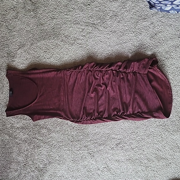 Jessica Simpson mermaid style bodycon dress. heathered black and maroon color. worn just a few times. very cute, very flattering. hits just below the knees but can be pulled up to look shorter.