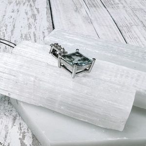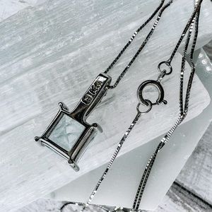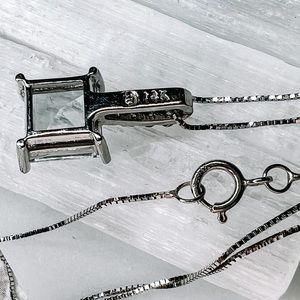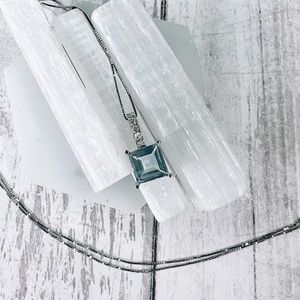 14k White Gold Princess Cut Aquamarine & Diamond Necklace. Photos were taken under a bright light, color may vary slightly. Open to offers, no lowballing please.