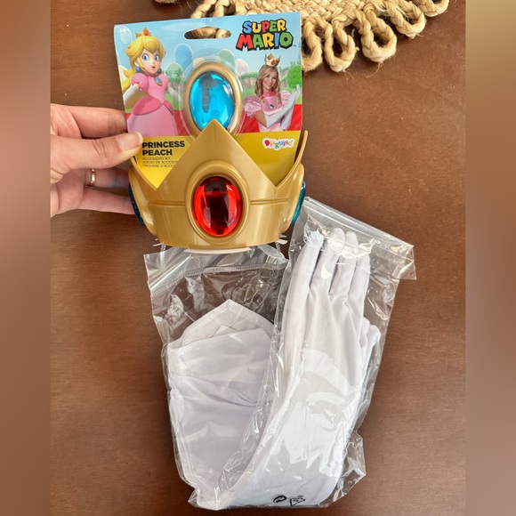 New Princess Peach from super Mario accessory kit. Includes gloves,crown and stick on amulet