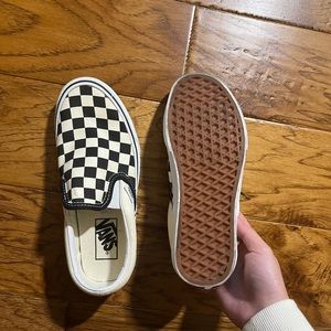 Brand new without tags black and white checkered Vans. Size 4Y which is equivalent to a women’s size 6.