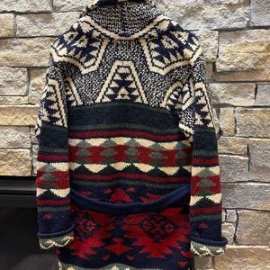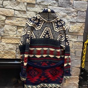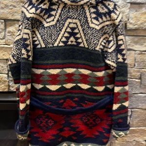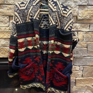 Vintage Ralph Lauren Country Wool Cardigan Sweater Coat Medium Southwest Aztec