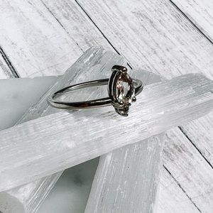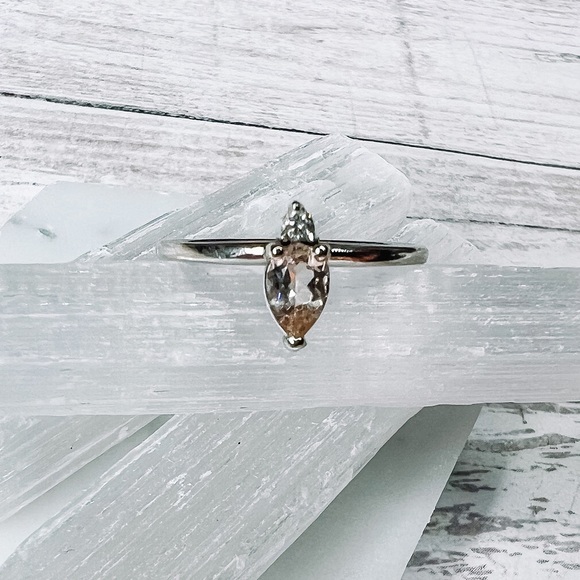 10k White Gold Morganite & Diamond ring. The ring features a 6x4mm pear morganite and 2mm round diamond. The ring is a size 7. Photos were taken under a bright light, color may vary slightly. Open to offers, no lowballing please.