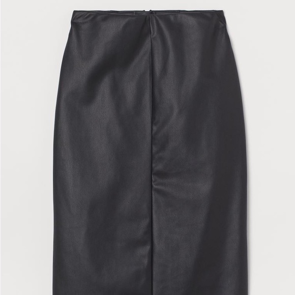 Knee-length skirt in faux leather. High waist, concealed, elasticized waistband, and concealed zipper at back. Laser-cut hem. Unlined.