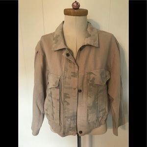 3/4 length sleeves and zip up front and snaps, as well as two front pockets. Women's size medium.