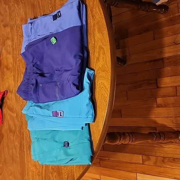 4 pair size 3X scrub pants. 2 pairs have stains on bottom hem of pants legs from dragging.