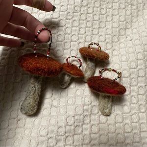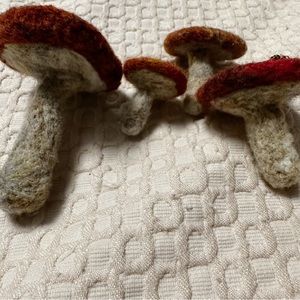 Handmade needle felted mushrooms, 4 pack. 100% genuine wool, glass beads