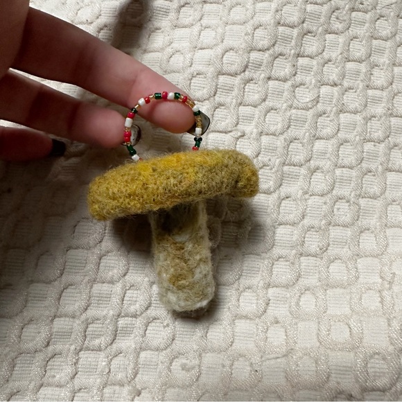 Handmade needle felted mushroom ornament. 100% genuine wool, glass beads
