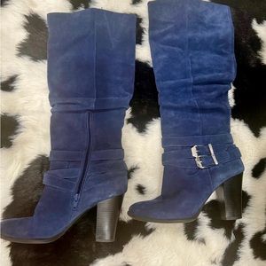 Knee High Blue Suede Boots
