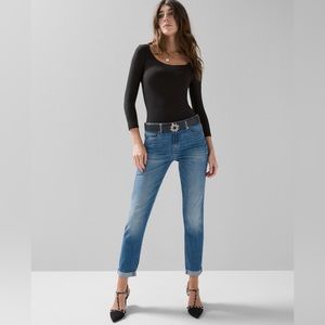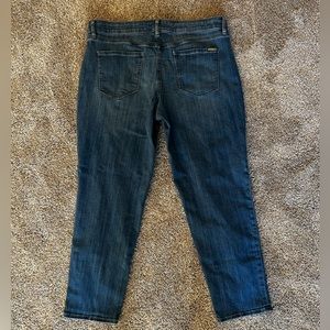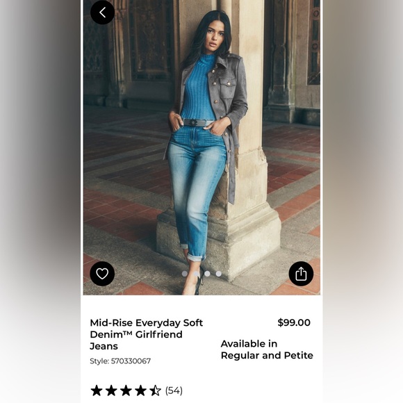 Girlfriend Fit: Slim through the hips and straight through the thighs to the ankle. Super soft, stretchy, very comfortable to wear all day long!