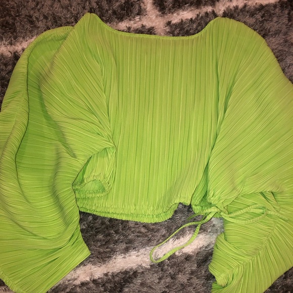 Crop top, lime green, cinches at waist. Poofy sleeves. Worn once .