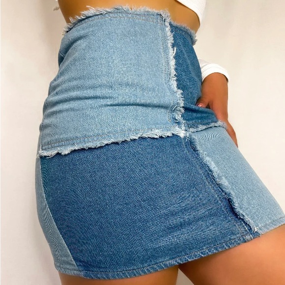 I bought this skirt a couple months ago from a boutique and it doesn’t fit. It’s a small. (I’m 5’6, 140lbs for reference). Sadly I’m selling it. You will not be let down and I’m sure you can totally rock this! Super cute! Love the different Jean colors and the fringe!