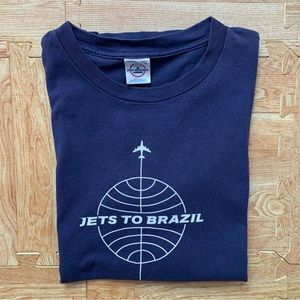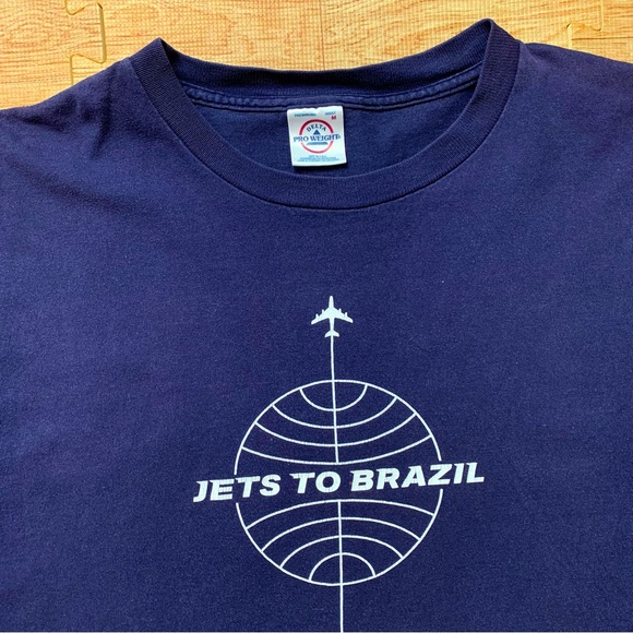Vintage Jets to Brazil Shirt Navy Blue Men’s Size Medium Rare EUC