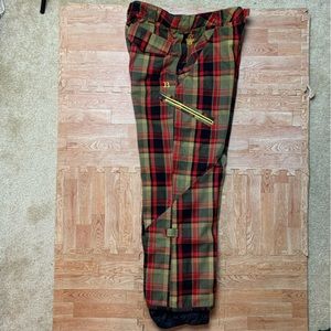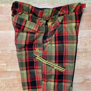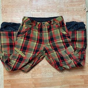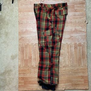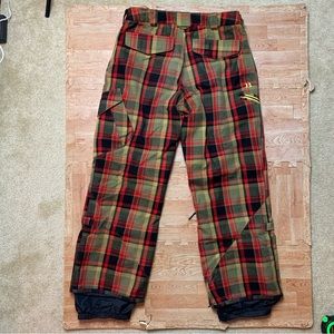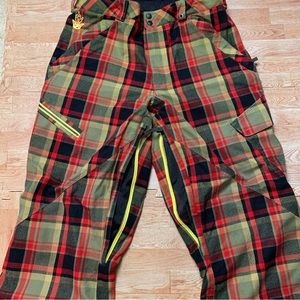 Rare BURTON Restricted MIDDLE FINGER Plaid Snow Board Pants Men's Size Large EUC