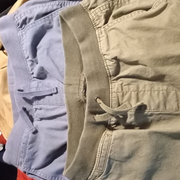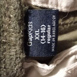 two pairs of cargo pants are made by Gap Kids the size is XXL for both the pair of cargo shorts is made by orphan pipeline size is 12 regular and the T-shirt the roller skating t-shirt is size XXL kids adding an extra t-shirt and for free at the collar Polo by Ralph Lauren. condition on these clothing is used but in decent shape price to move free shipping