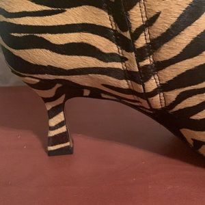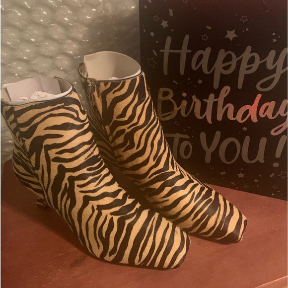 Animal print calf real fur dyed cow hair ankle booties square toe with zipper enclosure it has never been worn as you can see in photos.