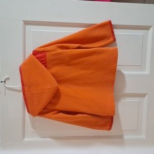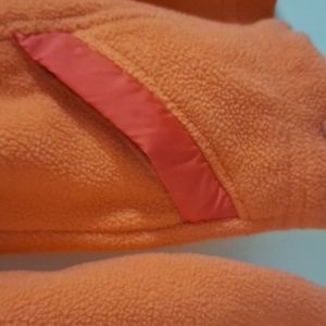 good used fleece jacket, no holes, no stains, smoke-free home, this is a coral color, zipper in perfect working condition and pockets zippers in excellent condition as well