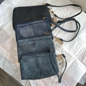 6in x 4in ,wristlets 3 are blue and 1 is black. Brand with tags, inside pocket and lined in brown. All zippers are functional. Thanks for checking them out. Will sale for $9.00 each.