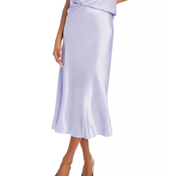 Light lavender satin midi skirt
