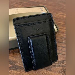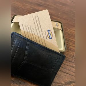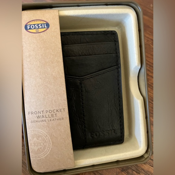 Like new fossil men’s front pocket wallet. Black leather. Great condition.