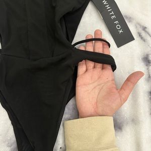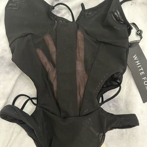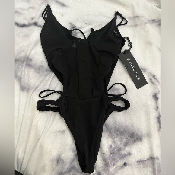 #Whitefoxboutique #bodysuit #nwt. Adjustable straps, mesh/see thru center, cheeky, with tie on chest. Retails for $49.99. No trades/swaps please