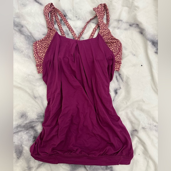#lululemon #workout top with built in bra and open keyhole back. No padding but has slits to add your own padding. Unsure of size (looks to be a medium) so price reflects unknown size. No trades/swaps please