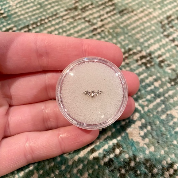 BVLA bat in solid 14k white gold. Threaded end. Super cute! I have this as a permanent fixture in my faux rook in rose gold!