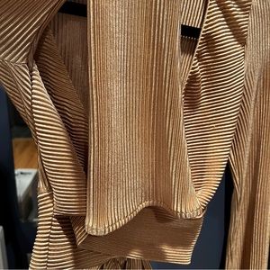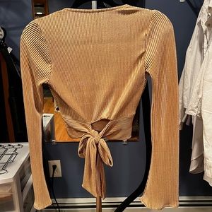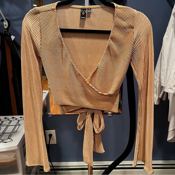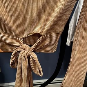 A stunning satin crop top for your next dinner and dancing plans! It features flared long sleeves, a plunge V-neckline, and a flirty tie-back cropped hem design on silky satin woven fabric with no stretch.