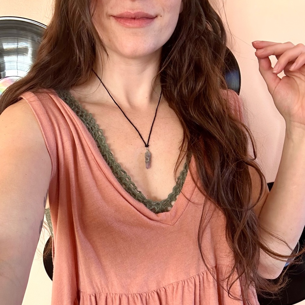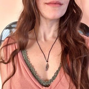 Handmade wire wrapped crystal necklace. Had an adjustable sliding knot. Hemp material.