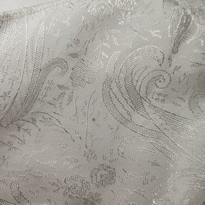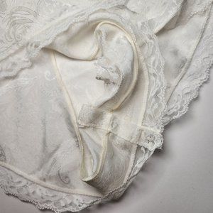 ⚡ Vintage Diane von Furstenberg white teddy. 80's lingerie bodysuit with thin straps, open lace front with tiny bows, and embossed fabric with floral and paisley motifs. Snap crotch. FLAWS: one gray dot stain on front right chest. Tagged women's large. ⚡
