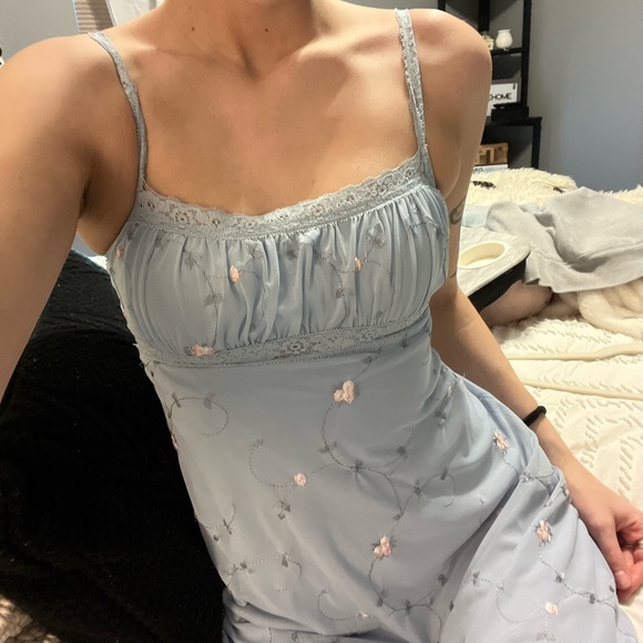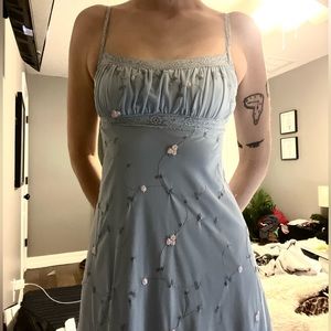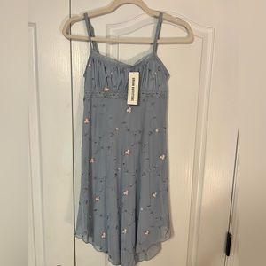 super cute blue dress w little pink flowers, adjustable straps , asymmetrical bottom NEW W TAGS !!
