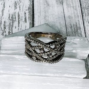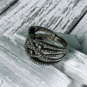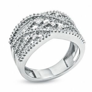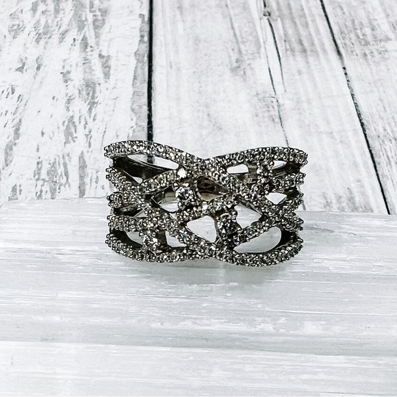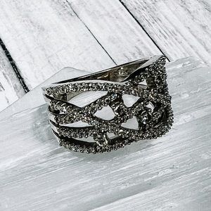 10k White Gold Diamond Criss-Cross Ring. The diamonds are 1/2 carat total weight and the 10k marking has been removed from resizing. The ring is a size 6.5. Photos were taken under a bright light, color may vary slightly. Open to offers, no lowballing please.