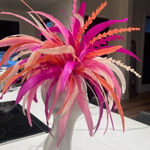 Large feather fascinator on non-adjustable, headband, off-white, fuchsia, light, pink, and coral