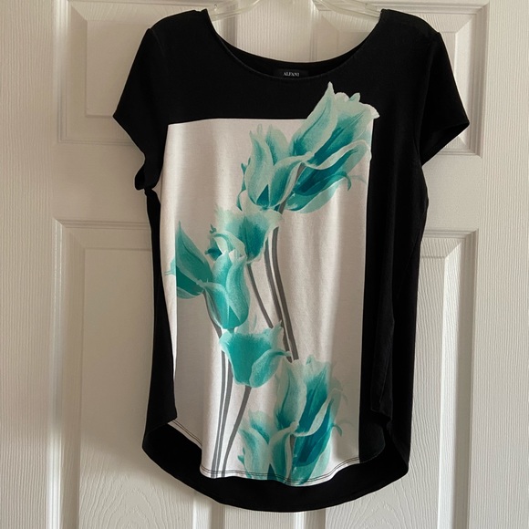 Floral in shades of aqua with gray